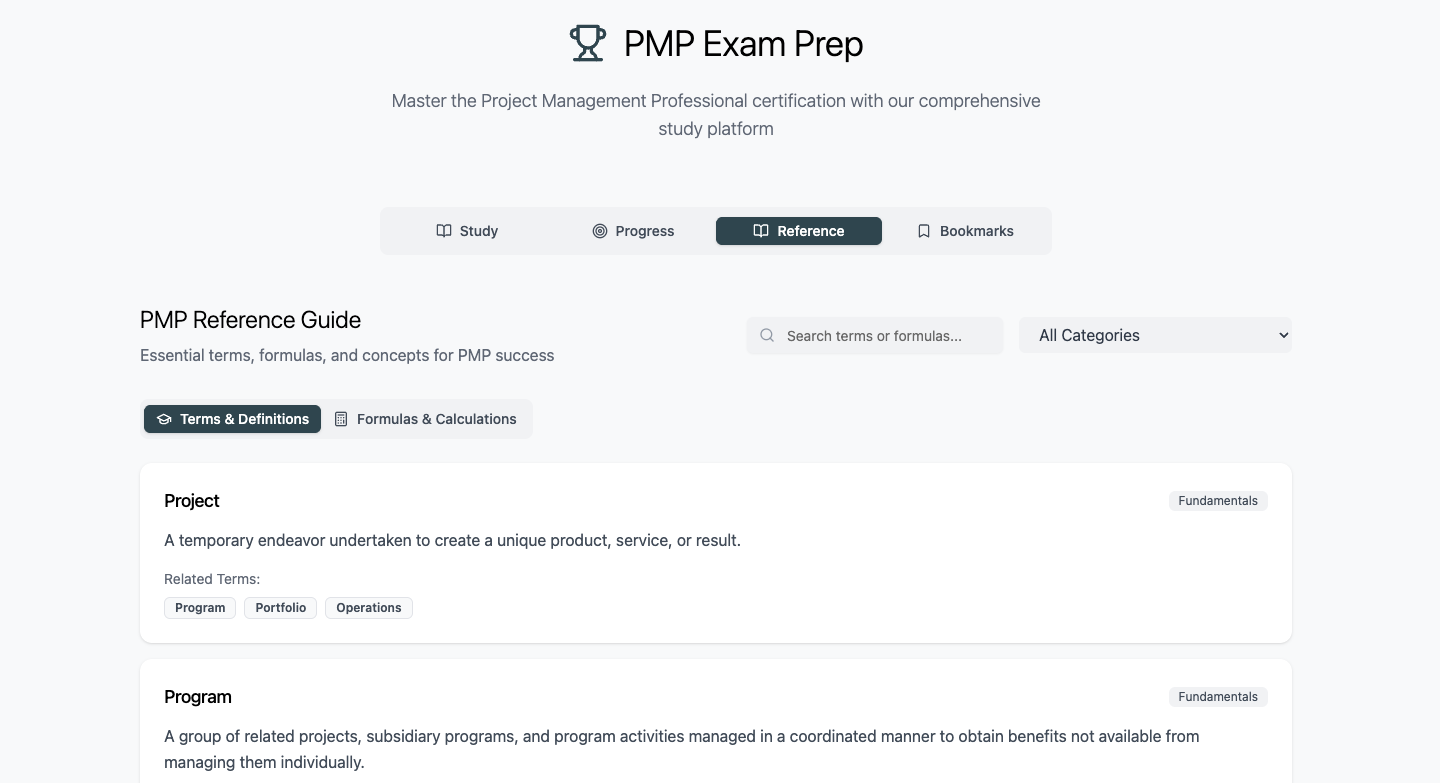 You'll get a streamlined, browser-based study tool for mastering core project management principles. No fluff. Just clean, efficient learning.